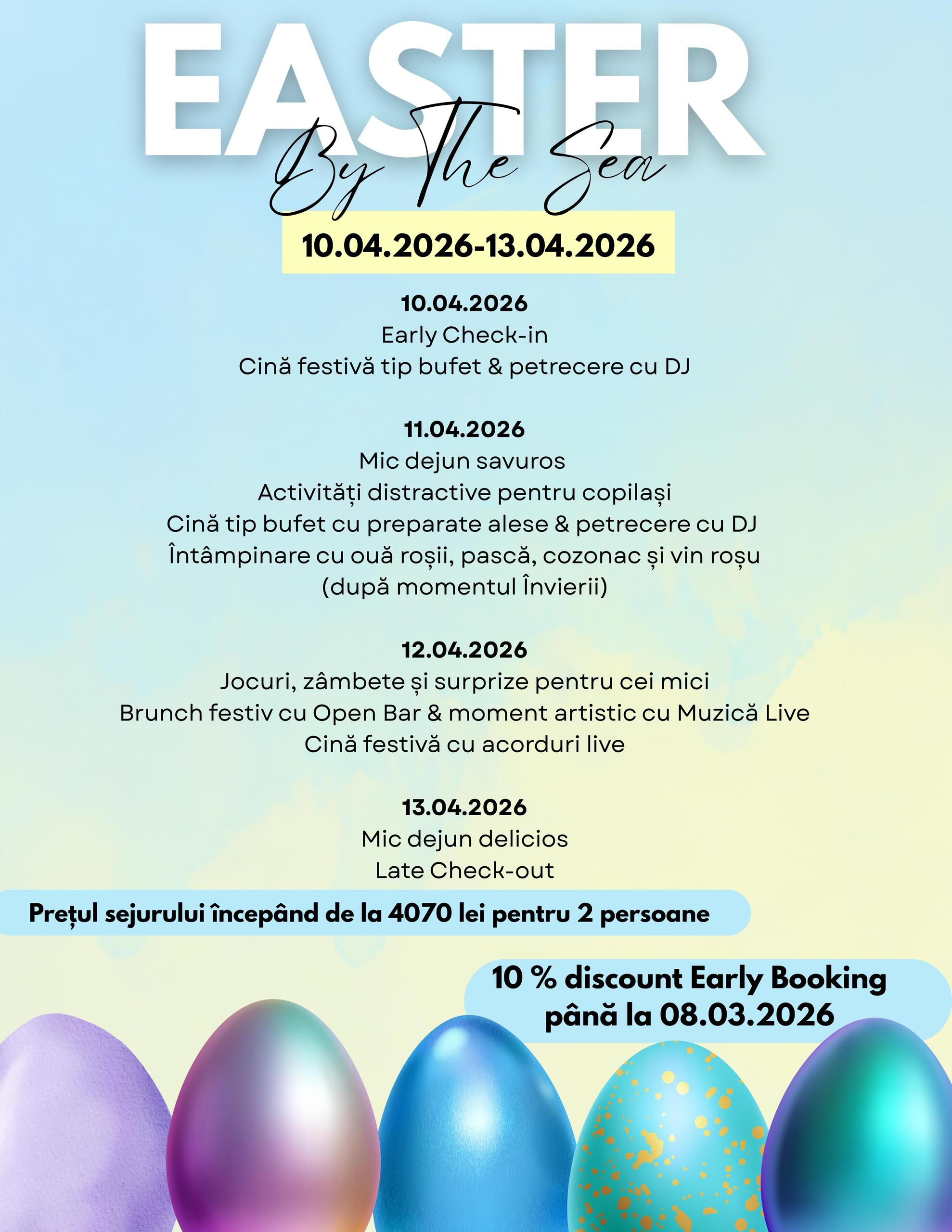 - Early check-in doar în funcție de disponibilitate.